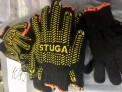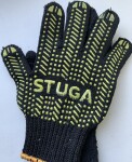 Рабочие перчатки с ПВХ рисунком "STUGA". Отличаются особой стойкостью к работам повышенной тяжести. За счёт смесовой пряжи, достигается оптимальное соотношение прочности и гигиенических свойств. Изделие свободно пропускает воздух, а также впитывает влагу. На внутреннюю сторону ладони и пальцев нанесен ПВХ рисунок. Он защищает основу перчаток от истирания и улучшает сцепление с предметами. Благодаря круговой вязке пальцы свободно двигаются в перчатке.